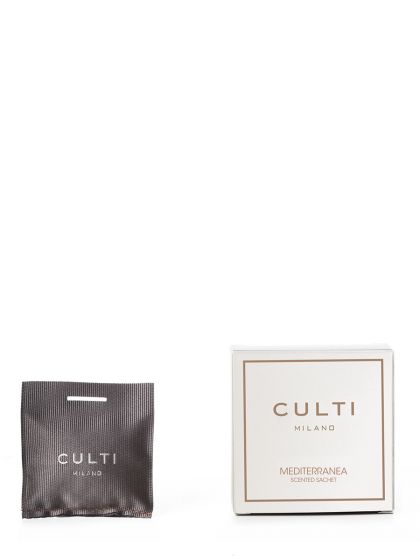 Exclusive fabric sachets for scenting the most personal places at home, such as drawers and wardrobes. A perfect diffusion of the most emblematic fragrances of CULTI MILANO. Mediterranea: The Apulian countryside in all of its fertile abundance, with pomegranate trees and prickly pears laden with fruits peeking above the drystone walls. Wandering into the Mediterranean scrub overlooking the sea; picking fruit, getting your hands dirty, tasting its woody essence.