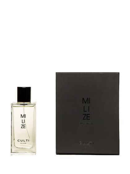 Texturae collection fragrances are enclosed in an elegant transparent square glass bottle, decorated with a black screen printing and enriched by a shiny black cap. The elegant black soft touch paper box with ton-surton print makes the experience of opening the package valuable. MILIZE: A game with the silk that slip away swishing in the wind, light and precious as silk in the air.