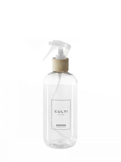 Cylindrical serigraphed bottle in transparent PET with Trigger. Elegance and minimalism come together in the exclusive WELCOME collection by CULTI MILANO. Enjoy CULTI's most iconic fragrances instantly with this handy spray diffuser. Aramara is the result of an afternoon spent in the kitchen of a Sicilian pastry chef who summoned his skills to reveal the countless secrets of bitter orange.