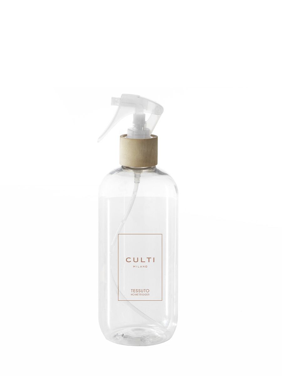 Cylindrical serigraphed bottle in transparent PET with Trigger. Elegance and minimalism come together in the exclusive WELCOME collection by CULTI MILANO. Enjoy CULTI's most iconic fragrances instantly with this handy spray diffuser. Tessuto: Walking through a cotton field, hands open, caressing the fluffy bolls. Touching the lightness of fine silk weaves and natural linens on Lake Como; closing your eyes and breathing in their cool, reassuring texture. Feeling at home, always.