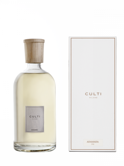 Flaconi di vetro satinato con tappo in acero naturale, vestiti da etichette in colore avorio. L'estetica della linea CULTI STILE evoca purezza ed eleganza. Da oggi anche nel nuovo formato 2500ml. Aramara è nata da un pomeriggio passato nella cucina di un pasticcere Siciliano, che ha svelato con maestria i mille segreti dell’arancia amara.