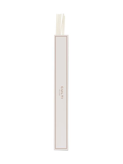 Veicolo per la diffusione graduale e costante del profumo nell’ambiente. I midollini tecnici sono prodotti in fibra tecnica studiata appositamente da CULTI Milano in laboratorio.