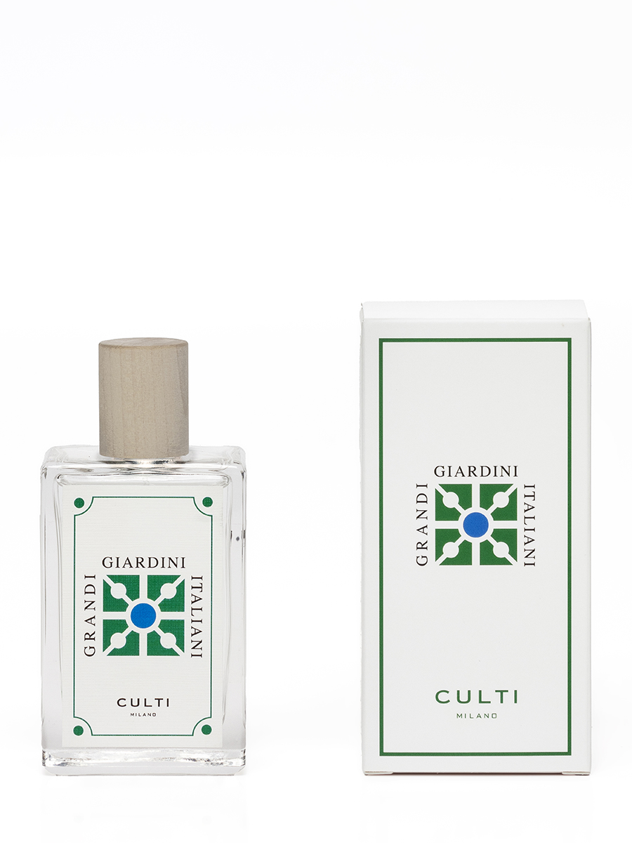 Culti Milano veste il suo flacone spray ambiente per GRANDI GIARDINI ITALIANI, impresa culturale per promuovere e valorizzare i più bei giardini in Italia.